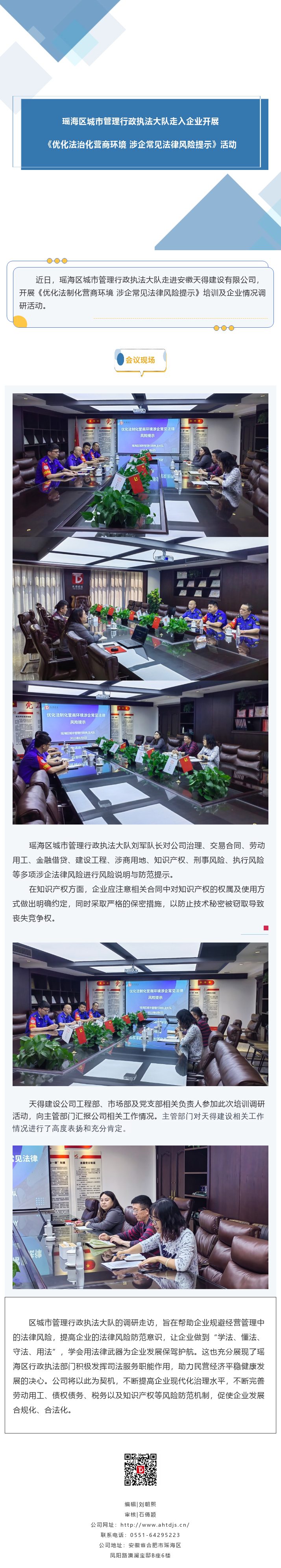 瑶海区城市管理行政执法大队走入企业开展《优化法治化营商环境 涉企常见法律风险提示》活动